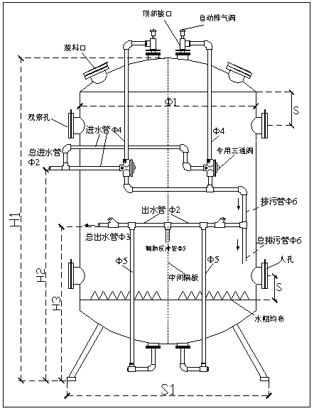 標(biāo)準(zhǔn)系統(tǒng)的優(yōu)異的反沖洗強度、產(chǎn)水量等水流特性使過濾器工作于穩(wěn)定狀態(tài)下;較大的進出水及排水口可提供大的沖洗強度,以較少的水耗得到較好的沖洗效果;系統(tǒng)設(shè)計時配用了專用的排氣閥,可將運行時帶入罐內(nèi)的氣體及時排出,減少氣體對設(shè)備運行及反沖洗的影響,提高設(shè)備運行的穩(wěn)定性;系統(tǒng)采用手動控制或壓差表自動控制,可以實現(xiàn)無人值守;標(biāo)準(zhǔn)系統(tǒng)均為雙罐并聯(lián)設(shè)計,可以隨時向后級系統(tǒng)連續(xù)供應(yīng)合格水;設(shè)備自動采用無氧水進行反沖洗,進一步提高反沖洗效果,降低水耗及除氧劑消耗;系統(tǒng)采用模塊化設(shè)計,可以根據(jù)需要增加罐體以達到更高的產(chǎn)水量。